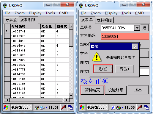 本系統(tǒng)通過與ERP系統(tǒng)同步或者導(dǎo)入工廠每一個生產(chǎn)工單的物料需求表,獲得物料的需求計劃。再通過PDA軟件界面顯示應(yīng)備貨的物料品種PN號和數(shù)量,倉庫人員通過PDA的物料需求備貨,車間通過PDA掃碼核驗物料,整個備貨全程無紙化作業(yè)而且規(guī)避了人為失誤。