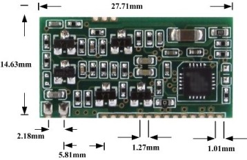 IVY125SUE模塊采用郵票孔連接方式,可像貼片器件一樣直接焊接到PCB板上。